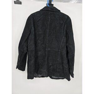 Dennis Basso Size 1X Womens Black Genuine Leather Suede Jacket Button Up