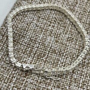 Add an elegant and timeless touch to your collection with this stunning vintage sterling silver tennis bracelet. Measuring 7 inches, this bracelet features sparkling cubic zirconia (CZ) stones set in a classic design, offering a brilliant shine that complements any outfit.