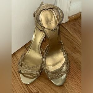 badgley mischka gold open toe sequin heels