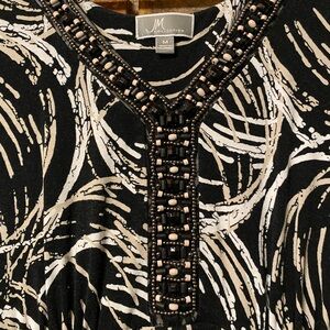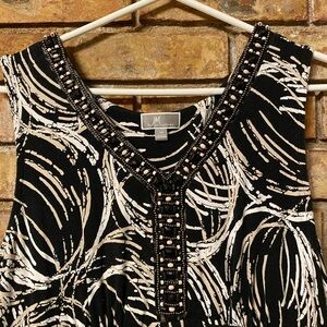 This stylish black and white sleeveless dress features a unique pattern, perfect for any occasion. Its elegant design offers both comfort and sophistication.