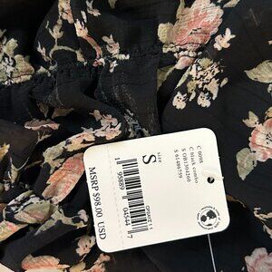 Free People Calling all boho babes! This stunning black floral blouse is perfect for adding a touch of whimsy to your wardrobe. Featuring a flowy silhouette and delicate floral print, this top is sure to turn heads wherever you go. Pair it with your favorite jeans or shorts for a chic and effortless look. Very sexy and adorable... Turn heads!