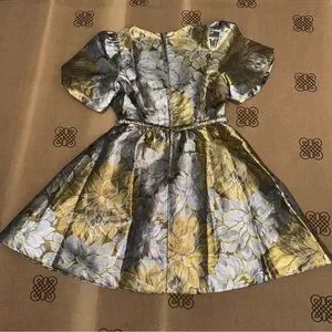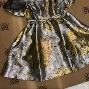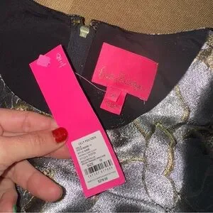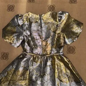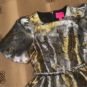Lilly Pulitzer Priyanka Short Sleeve Dress In Gold Metallic Peony Parade Brocade Size 10