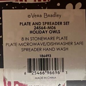 NEW in box- Vera Bradley Holiday Owls Plate and Spreader set. Great for festive, home holiday use, gift giving, or the highly anticipated office ‘grab’.