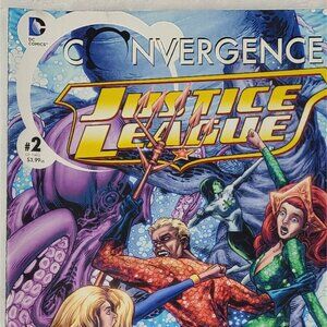 Convergence Justice League 2 DC Comics 2015 FN Mark Buckingham Cover AWritten by Frank Tieri. Art by Vicente Cifuentes. Cover by Mark Buckingham. STARRING HEROES FROM THE PRE-FLASHPOINT DCU! Witness the brutality of the battles between worlds as Flashpoint Aquaman proves to the Justice League how far he's willing to go to protect his kingdom. features a bonus DETECTIVE COMICS story written by Francis Manapul and Brian Buccellato and illustrated by Francis Manapul. 40 pages, full color Rated T