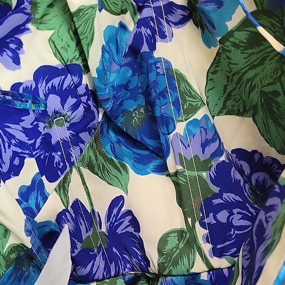 Vibrant floral strapless top. Features blue and green flowers. Perfect for a stylish look.