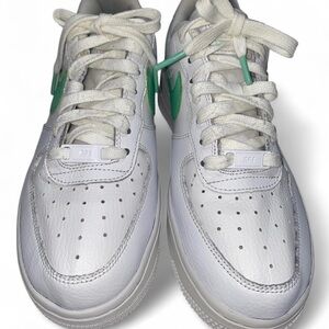 Nike Air Force 1 trainers white and green. Good condition. Preloved condition. Women’s size 7.5 #sneakers #AF1 #nike #womensfootwear #airforceone 👟