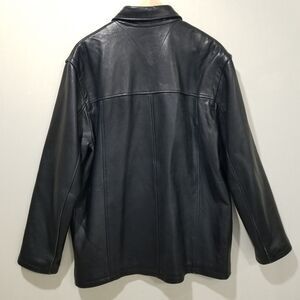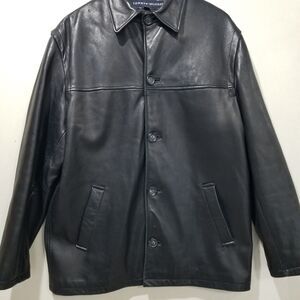 Vintage Tommy Hilfiger Leather Jacket Mens Medium Black Mid Pea Coat Dress