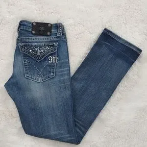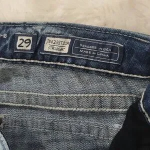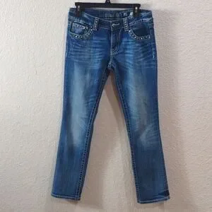 Used Perfect Condition MISS ME STRAIGHT JEANS Blue Size 29, please check the pictures,Two small marker stains below the front right pocket of the pants.