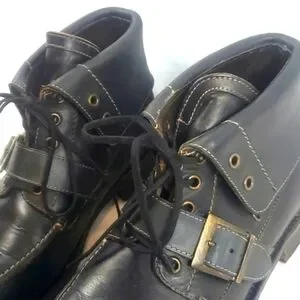 Vintage Johnston & Murphey Black Leather Foldover Boots With Buckle