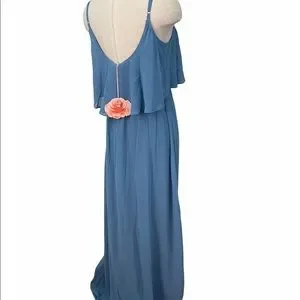 The Caitlin Ruffle Maxi flutters and flows from top to bottom. She's extremely versatile, so wear her as a classic spaghetti strap or make her into a cold shoulder!