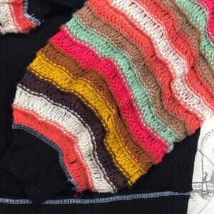 ✅New store display with tag ⬆️see pictures ✅Style # Style #OB1040466 Body: 68% Polyester, 27% Viscose, 5% Elastane. Ribbed wide neck pullover Striped open weave drop shoulder sleeves Raw edge details USD $128