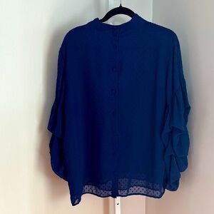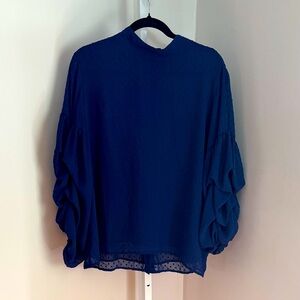 H&M Dark Blue Plumeti Blouse Gathered Li g Sleeve Women’s Size 14