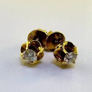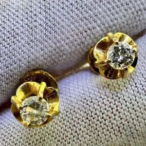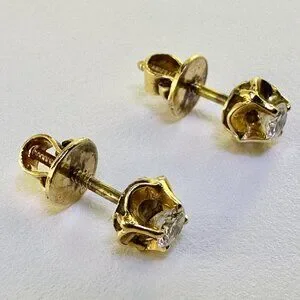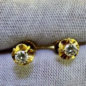 Vintage 18K Yellow Gold Diamond Stud Earrings