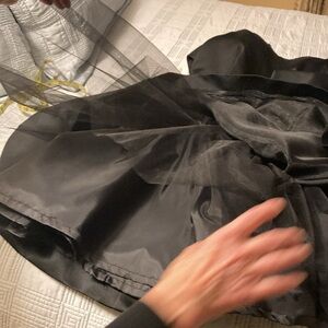 Gorgeous black formal fun party dress, from the 90’s, a real show stopper, many heads will turn if you show up in this! Very good condition! Sleeves and bows make this LBD. Fully lined with tulle underlay. From a smoke free, pet free home.