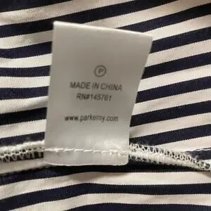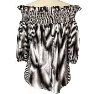 Parker Navy Blue and White Off the Shoulder Ruffle Smocked Blouse