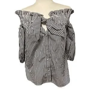 Parker Off the Shoulder Button Front Striped Blouse
