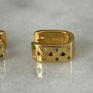 COPY - Gold Crystal Star Burst Colorful Oval Chunky Hoop Huggie Earrings Brand …