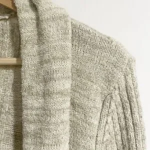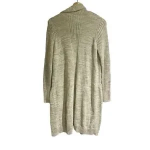 Anthropologie Women Medium Long Line Cream Beige Knit Cardigan Pockets Cozy
