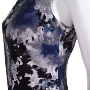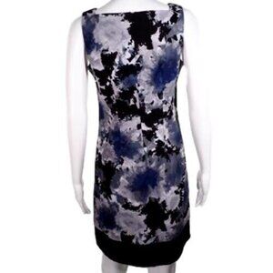 AB Studio Dress Womens Size 4 Abstract Floral Print Blue Black White Sleeveless