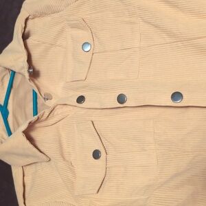 Nice yellow light corduroy shirt. New, never worn. Fit more like a large. Just a little tight in the shoulders for me.