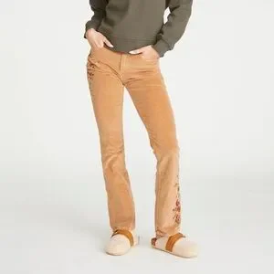 Driftwood Kelly Embroidered Bootcut Cord Pants in Falling Sunflower