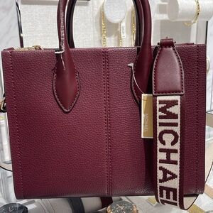 Michael Kors Mirella Small Pebbled Leather Crossbody Bag Oxblood NWT