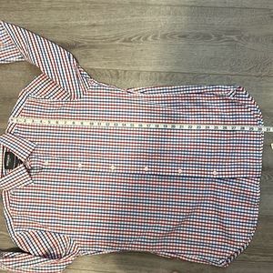 BONOBOS Men’s Slim Fit Dress Shirt 16 |35 Plaid Red Blue White Jetsetter Stretch