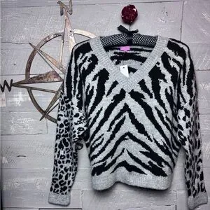 🔥 New Francesca’s animal print V-neck pullover sweater.