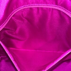 Stylish pink, purple & red Beverly Breeze Small Coal Tote Bag with vibrant zigzag pattern, featuring black patent leather handles, trim and base. Perfect for everyday use. Style PXRU3645. 8" strap drop. Beautiful magenta cloth interior with one zip pocket and two slip pockets. Super fun vintage piece! A rare find in new with tags condition and no flaws to note. Original care card included.