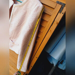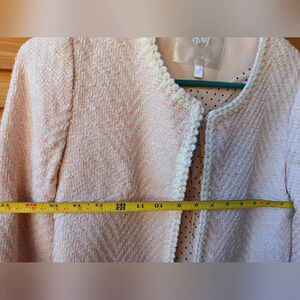 This listing is for Tibi Collection (Asian Branding) Pink Tweed Cropped jacket. This is an Asia size Small. It has very cute white and pink details all throughout with a pink and black polka dot pattern for the lining. It's a cropped jacket so the sleeves will be much longer than the body itself.