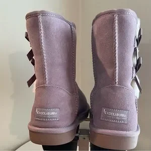 Brand New size girls 4 Youth Grape, the Victoria Short is sure to charm your style little savant with a duo of dainty bows and a row of plush, exposed sheepskin. Lined in cozy faux fur and finished with a durable sole, this mini boot was made for the gal who likes to make a statement in the schoolyard.