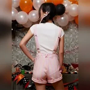 Sweet Society Monster Pastel Stripe Bow Shortalls With Chain size small