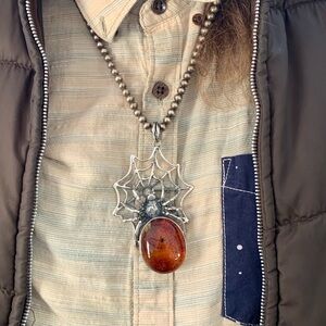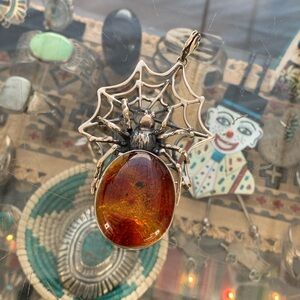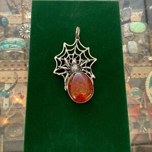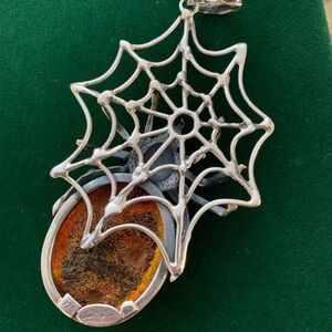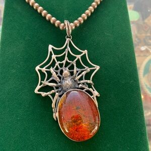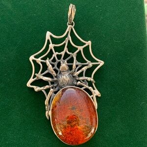 Sterling g silver spider pendant 925 spiderweb jewelry baltic amber gothic punk