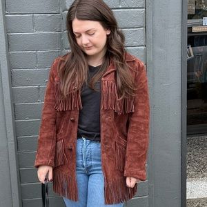 Vintage Genuine Leather Suede Fringe Jacket