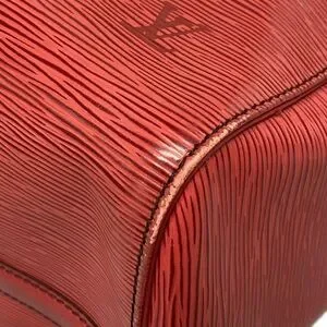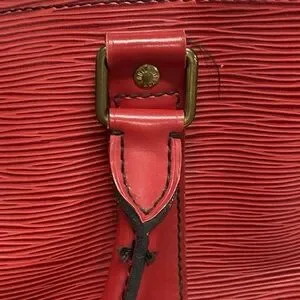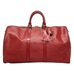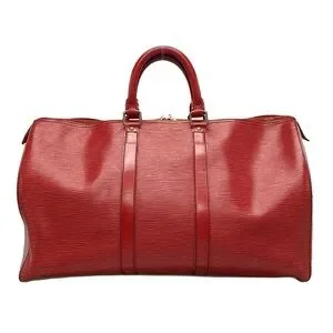 This is an authentic LOUIS VUITTON Epi Keepall 45 in Castilian Red. This luggage is constructed of durable red textured epi leather. The luggage features rolled leather top handles, a side pocket and brass hardware. This opens to a suede leather interior with a D-ring.