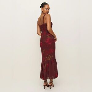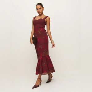 NEW Reformation Irisa Midi Dress Barcelona Border Red Floral Lace | size 6