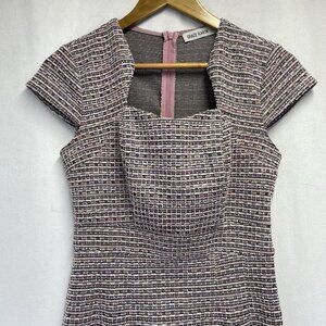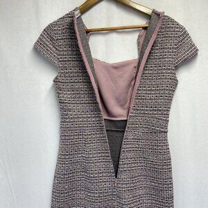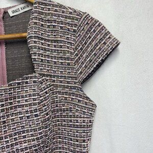 GRACE KARIN Cap Sleeve Queen Neck Tweed Body-con Pencil Dress Women Small Pink