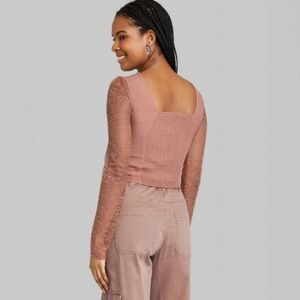Wild Fable Women's Long Sleeve Lace Bustier Top Brown Small
