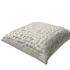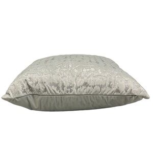 Add a touch of elegance to your living space with this beautiful decorative pillow from Castillo Home. Measuring 21 X 21 inches and featuring a stunning metallic silver embroidered ikat pattern on velvet material. The color of this pillow is best described as ‘icy blue’ or ‘cinderella dress blue’. This pillow is filled with 100% feather and has a zip closure for easy cleaning (dry clean only). This pillow is perfect for use as an accent piece on sofas, armchairs or beds and will add glamour and sophistication to any room in your home.