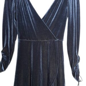 Urban Outfitters Velvet Surplice Playsuit EUC no flaws Simply femme in this surplice style velvet playsuit that’s luxer-than-luxe. Made from a supple velvet in a nipped waist construction with a surplice style bodice that’s topped with a plunging v-neckline. Topped with long sleeves that feature cinch detailing at the wrists. Finished with an overlay at the front and a high-rise shorts bottom for a skort look. Content + Care - Polyester, spandex, nylon - Machine wash Size XS