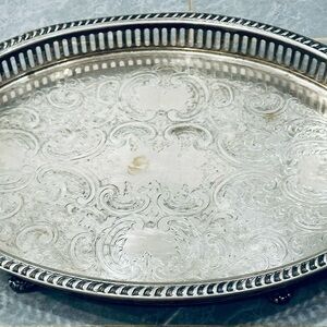 W&S Blackinton Footed Silverplate Serving / Vanity Tray Pierced Edges Handles