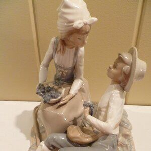Nao by Lladro Vintage 1977 Figurine 'Chattering' #199 Boy and Girl Eating Grapes