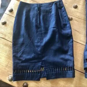 Pia Rucci navy blue 100% linen skirt set . Size 6