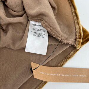 Be the epitome of elegance and sophistication in the Reformation Gold Velvet Strapless Maxi Dress. Grab this new with tags piece before it's gone, and make every occasion unforgettable.