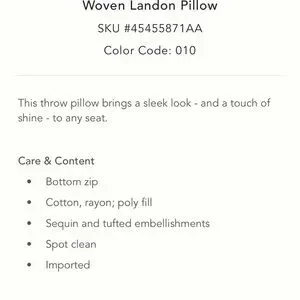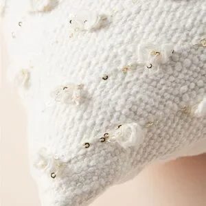 Anthropologie Woven Landen Pillow Cover Case Off White & Gold Rectangle home