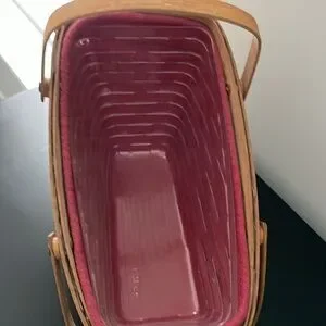 Basket has been used but in great condition. Runners only used a few years for Christmas. Runners EUC. Plastic protector and Paprika Red Cloth liner.