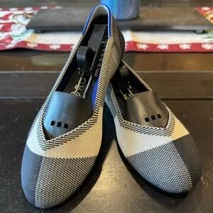 Discontinued Rothy’s Captoe Flats (Black/White/Gray) in size 7.5! Worn about a dozen times before deciding I needed a bigger size. Have been washed once, best for someone in a SS 6.5-7. Lightly worn condition, smoke free home! Will send in non-original Rothy’s box with shoe forms.