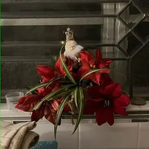 Navy background with floral pattern with green leaves & brown flowers. Elastic at the cuffs. Gently used with no flaws. Very flowy size XL