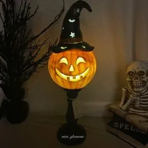 Jack-O-Lantern Pumpkin Head Halloween LED Light Up Pedestal Lamp Decor New