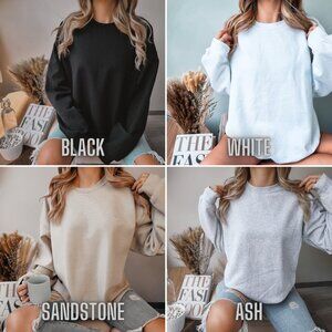 Printed on Comfort Colors 1717 (adult t-shirts), Gildan 1800 (women's sweaters), and Bella + Canvas 3001T (toddler/kid tees). Prices vary by style and size.